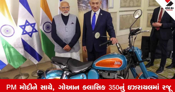भारत के रॉयल एनफील्ड मोटरसाइकिल ब्रांड ने इज़राइल में नए गोवा क्लासिक 350 मॉडल का अनावरण किया। पीएम मोदी और इजरायली पीएम बेंजामिन नेतन्याहू ने एक साथ फोटो खिंचवाई। रॉयल…