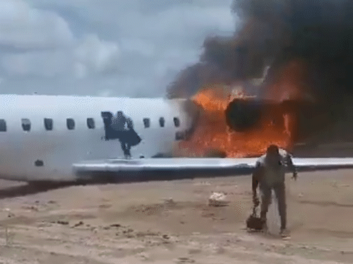 रनवे पर उतरते ही विमान में लगी आग…वीडियो: क्रैश होते ही लगी भीषण आग, खिड़कियों से चीखते दिखे यात्री; फ्लाइट में मंत्री समेत कई लोग सवार थे