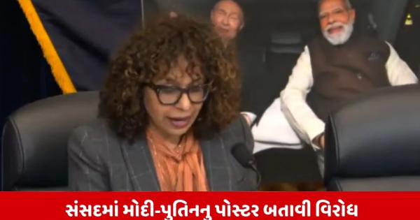 संसद में मोदी-पुतिन का पोस्टर दिखाया और विरोध जताया