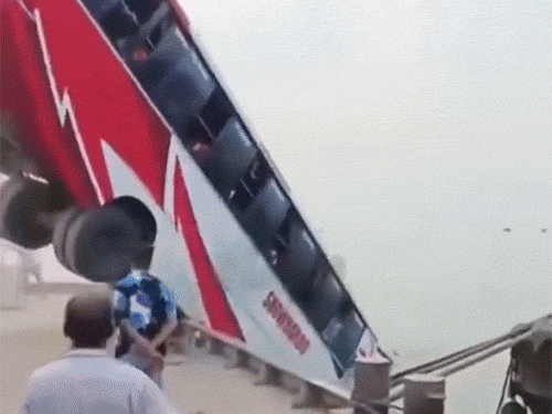 बांग्लादेश में नदी में बस पलटी, 23 की मौत: 11 लोगों ने तैरकर बचाई जान, बस को बड़ी नाव पर लादते वक्त हुआ हादसा