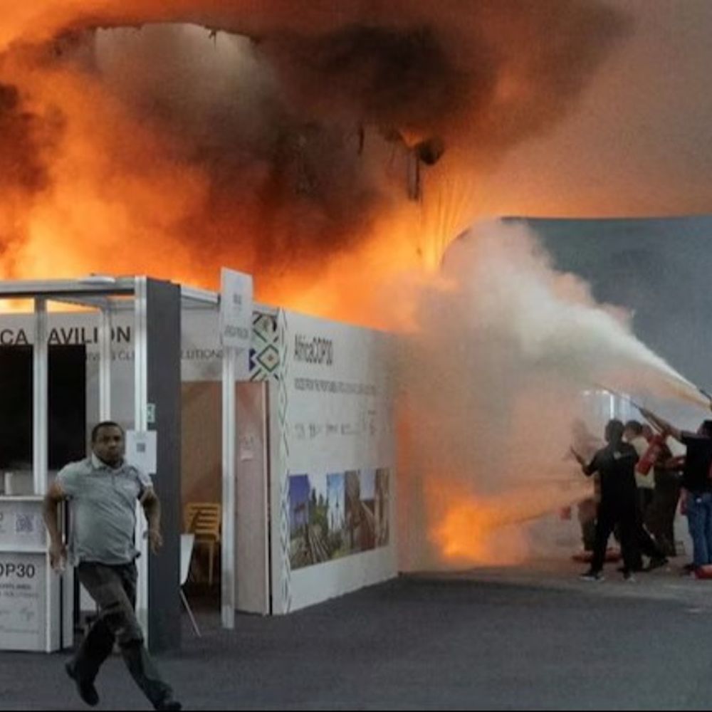 ब्राजील के शहर बेलेम में संयुक्त राष्ट्र COP30 जलवायु शिखर सम्मेलन के मुख्य स्थल पर गुरुवार को आग लग गई, जिसमें 13 लोग घायल हो गए। जिस वक्त आग लगी उस वक्त भारतीय प्रतिनिधिमंडल के साथ भारत के पर्यावरण मंत्री भूपेन्द्र यादव भी मौजूद थे. हालाँकि, वह और अन्य अधिकारी घटनास्थल से सुरक्षित निकल गए। द न्यूयॉर्क टाइम्स के मुताबिक, स्थानीय समयानुसार दोपहर 2 बजे (भारतीय समयानुसार रात 10.30 बजे) कन्वेंशन हॉल के अंदर एक मंडप में आग लग गई। कार्यक्रम के दौरान 190 से अधिक देशों के 50,000 से अधिक राजनयिक, पत्रकार और कार्यकर्ता मंडप में एकत्र हुए। भारतीय सुरक्षा मंत्रालय के प्रवक्ता और भारत के पर्यावरण मंत्री भूपेन्द्र यादव ने कहा कि घटना के समय ब्लू जोन में भारतीय प्रतिनिधिमंडल के साथ संयुक्त राष्ट्र महासचिव एंटोनियो गुटेरेस और भारत के पर्यावरण मंत्री भूपेन्द्र यादव भी मौजूद थे. आग की सूचना मिलते ही सभी को मौके से सुरक्षित बाहर निकाल लिया गया. आग लगने से अफरा-तफरी मच गई। आग लगने से हजारों लोगों के बीच अफरा-तफरी मच गई। घटनास्थल के वीडियो और तस्वीरों में लोग अपनी जान बचाने के लिए भागते नजर आ रहे हैं। उसी समय बरामदे से आग की लपटें और काला धुआं निकलता दिखाई दिया। धुआं कई किलोमीटर दूर से देखा जा सकता था. दर्जनों एंबुलेंस और दमकल की गाड़ियां घटनास्थल पर पहुंचीं। कार्यक्रम के आयोजकों, यूएन सीओपी30 प्रेसीडेंसी और यूएनएफसीसीसी ने एक संयुक्त बयान में कहा, बाद में आग पर काबू पा लिया गया। आग लगने के कुछ मिनट बाद ही इलाके में भारी बारिश शुरू हो गई, जिससे कार्यक्रम स्थल के बाहर मौजूद हजारों लोग बारिश में भीग गए। 10 से 21 नवंबर तक संयुक्त राष्ट्र फ्रेमवर्क कन्वेंशन ऑन क्लाइमेट चेंज (यूएनएफसीसीसी) के वार्षिक COP30 जलवायु शिखर सम्मेलन में भाग लेने के लिए 190 से अधिक देशों के हजारों लोग पहुंचे हैं। आयोजकों ने अपने बयान में मेहमानों से कार्यक्रम के संबंध में जानकारी के लिए अगली सूचना तक इंतजार करने को कहा है। हालात को देखते हुए पुलिस ने प्रवेश बंद कर दिया और इलाके की घेराबंदी कर दी. आग की सूचना मिलते ही दर्जनों एंबुलेंस और दमकल की गाड़ियां तुरंत पहुंचीं और स्थिति पर काबू पाया.